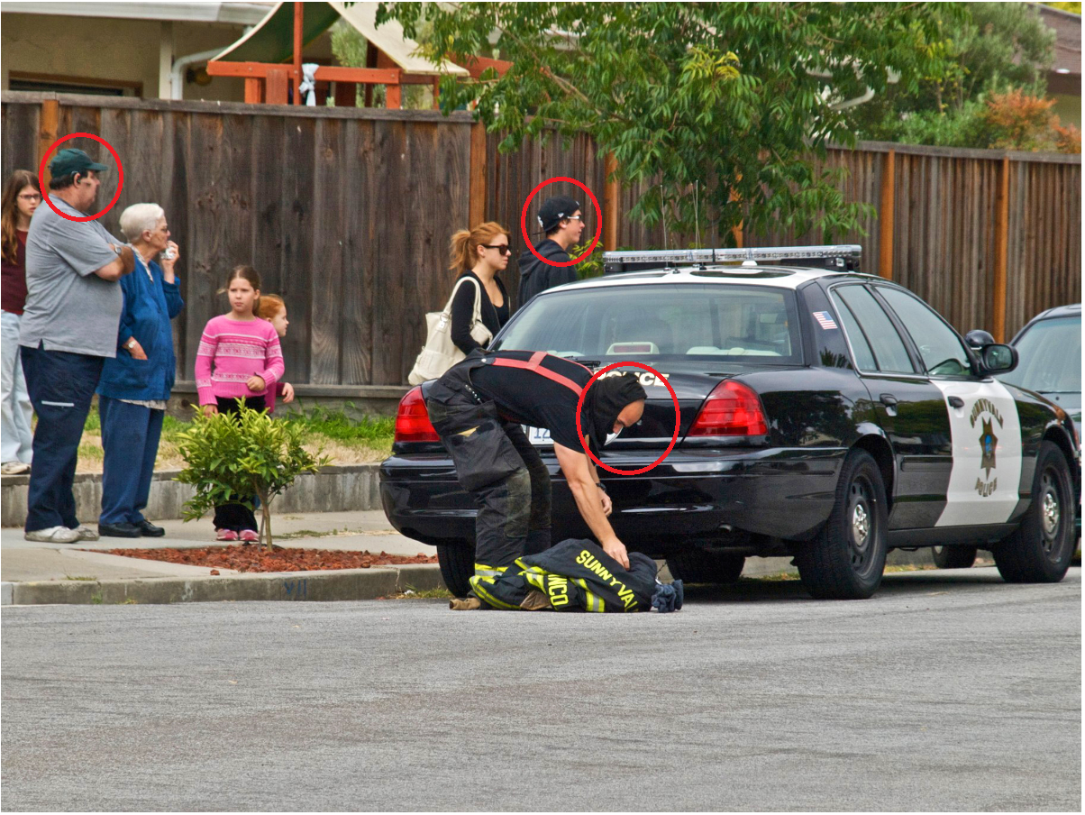 There are 3 people wearing hats in total, as shown by the red circles in the image below.